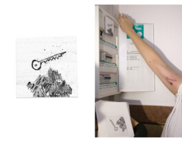 Das Künstlerbuch »seven hundred sixty-nine wanna do’s« präsentiert neben Fernwehmotiven und Wortbildern, skizzenhafte Beobachtungen, private Notizen, Kommentare und persönliche Mythologien. Sie folgen der Alltagssprache, den Lautverschiebungen und Worterfindungen sowie traumartigen Szenerien und Landschaften. Die bildende Künstlerin Franziska Nast arbeitet auch als Grafikerin und Tätowiererin; »Seven hundred sixty-nine wanna do’s« könnte als ein Musterbuch für 769 mögliche Tätowierungen gelten. Die Motive stehen in einer lockeren Folge, eröffnen Formationen oder verdichten sich als Serie. Tanzende Palmen, Grand Paradise Highway, Botanik an der Autobahn, Gestrüpp. Die Südseefahrer sind zurückgekehrt, berichten vom Paradies, echten Träumen, zeigen Souvenirs. X cloud, N hair, Y rain, Visage, Visage, Visage, XXL, the end, wieder Palmen, Rrrrrrreality, don’t cry! Wanna do steht für: »hätte ich gern gemacht, schade, wär’ geil gewesen«, »wollte ich schon immer mal machen«, »werde ich bei nächstbester Gelegenheit mal machen«, »wird mit Sicherheit passieren, vielleicht!« Auch traditionelle Tätowierer halten »wanna do«-Bücher bereit, der oder dem Kunden, vor allem jenen, die keine eigenen Ideen mitbringen, Motive anzubieten. Die Geschichte solcher Musterbücher geht weit zurück in die europäische Kulturgeschichte, so war es für Künstler des Barock notwendig, ein Musterbuch zu konsultieren, sollte ein Löwe gemalt werden, der aus eigener Anschauung nicht bekannt war. Musterbücher zeigten exotische Tierwesen, einzelne Menschengestalten und Personengruppen in typischen Haltungen bei Tätigkeiten, und waren immer schon unentbehrliche Hilfsmittel. Franziska Nast lernte von Herbert Hoffmann (1919–2010), seinerzeit Europas ältester Tätowierer. Herbert war nicht nur der Begründer der ältesten Tätowierstube in Hamburg, er war auch akribischer Sammler und Archivar. Nast lernte Herbert Hoffmann 2006 durch einen wunderbaren Zufall kennen – sie wurden enge Freunde. Ihr erster Stich auf einer »fremden« Person fand auf ihm, dem alten Meister, statt. Er wiederum tätowierte ihr den letzten Anker seines Lebens. Franziska Nast schöpft nach wie vor aus den Eindrücken und dem Erbe dieser besonderen Freundschaft. Thematisch umkreisen ihre Werke häufig Sehnsuchts- und Wandermotive, inspiriert durch das Nautik-Repertoire, der sogenannten Seefahrerromantik mit der religiösen Symbolik von Glaube, Liebe, Hoffnung, zu der beispielsweise der Anker, das Herz und das Kreuz sowie Glücks- und Schutzmotive gehören. Eine zentrale Rolle in Franziska Nasts künstlerischen Auseinandersetzung spielen Transformationstechniken. Ausgehend von der üblichen Methode des Tätowiervorgangs auf dem menschlichen Körper, transformiert sie den Prozess: sticht und bezeichnet statt Haut andere Untergründe. So entstehen auch die filigranen Zeichnungen im Kleinformat, die sogenannten »T-drawings«. Zeichengrund der kleinen T-drawings ist Isolationsmaterial aus dem Baumarkt, das man üblicherweise hinter die Heizung klebt. Franziska Nast weißt die zunächst silberfarbenen Zuschnitte aus »Climaflex®« (alukaschiertes Polystyrol) mit Wandfarbe und fixiert sie auf Graukarton. Die Materialität dieser Verbindung ist hautartig, weich, die Tinte verläuft aber nicht. Die Zeichnungen entstehen mittels Tätowiermaschine und -nadeln in unterschiedlichen Größen.
